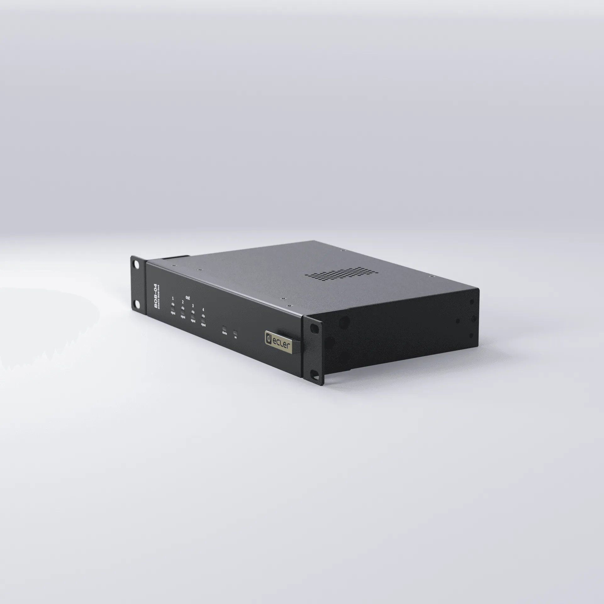 BOB-04 is a digital audio Dante/AES67(Audio Over IP) Break Out Box. It delivers 4 LINE level audio outputs, converted from 4 Dante/AES67 (Audio Over IP), received from the Ethernet digital audio LAN it is connected to. The device features PoE (Power over Ethernet), DC supply directly from PoE ready Ethernet switches. An optional 24VDC external PSU is available (sold separately). BOB-04 is a generic Dante/AES67 device that can be used in combination with EclerNet / EclerPLEX / VIDA / HALO Dante devices from Ecler, or with any other third-party Dante/AES67 devices, but it is not a native EclerNet / EclerPLEX guest unit.