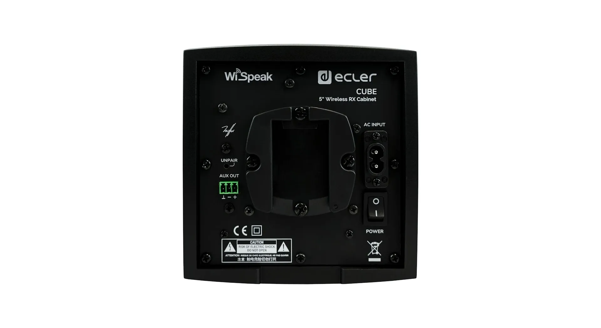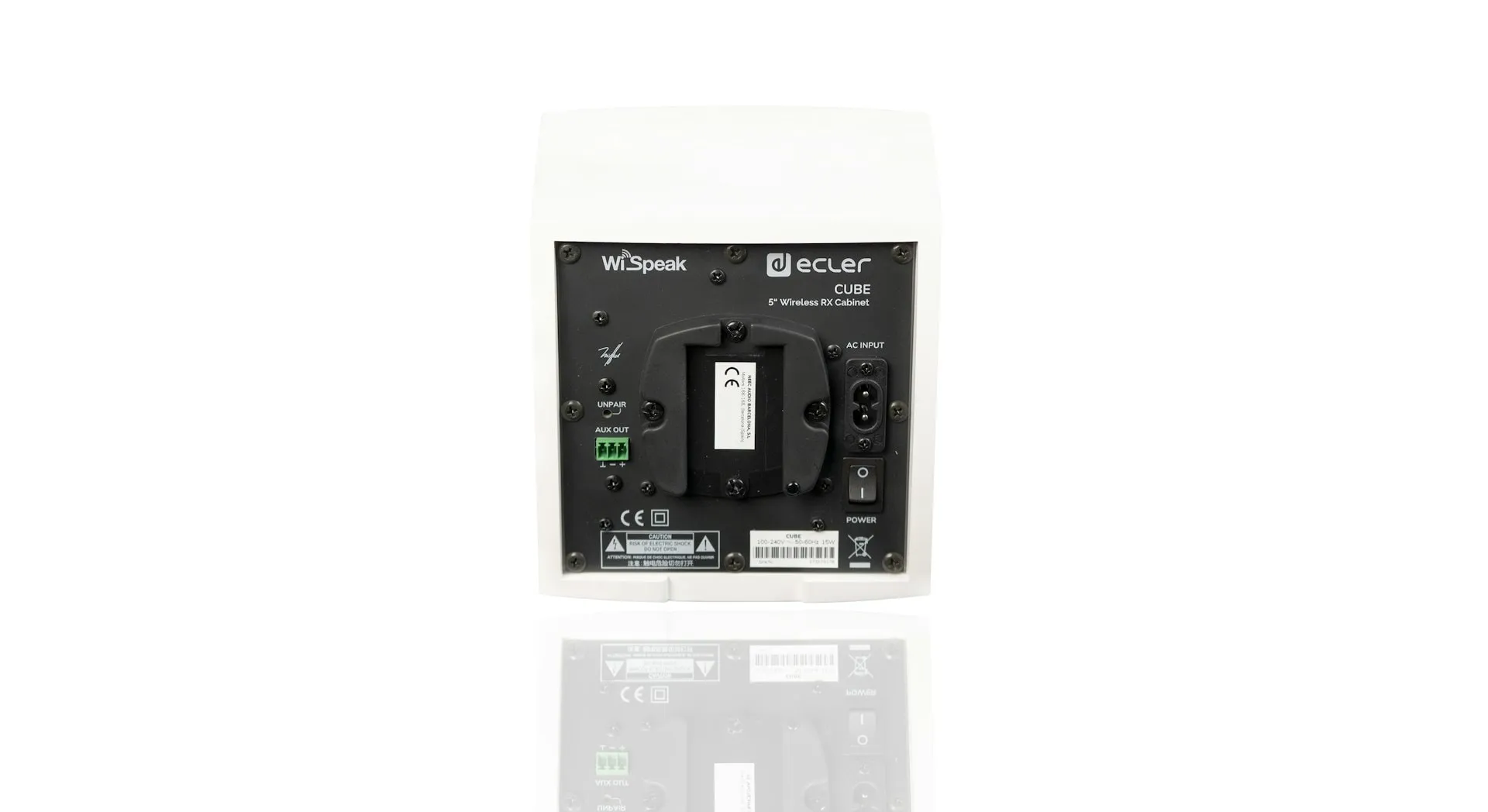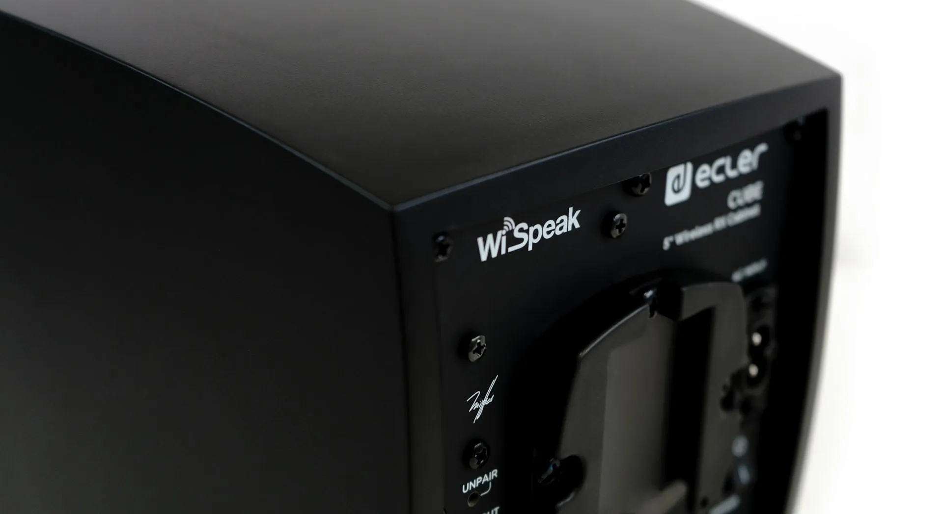 WiSpeak CUBE is a self-powered 5″ loudspeaker cabinet with wireless audio reception and control capabilities under the control of the Master unit, featuring an installation system which is compatible with ceiling light rails. Alternatively, wall mount or desktop installation is as well possible by means of the included accessories.