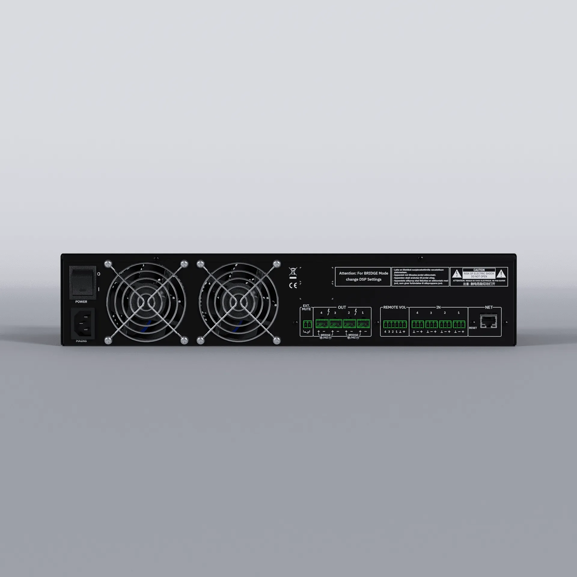 HADA-4B150 is a 4x125W digital amplifier that supports low and high impedance loads. The internal DSP, through the DSP Manager software, allows tailoring the input and output signal through parametric EQs, multi-band compressors, limiters, and delays and each configuration can be saved as a preset. In addition to the software option, input levels can be controlled via the front panel potentiometers, via remote controls using the rear panel GPI, or via a TCP/IP from third party control systems. All HADA series amplifiers include efficient thermal protection, DC protection, over current protection, and HF protection for total reliability in any kind of installation.