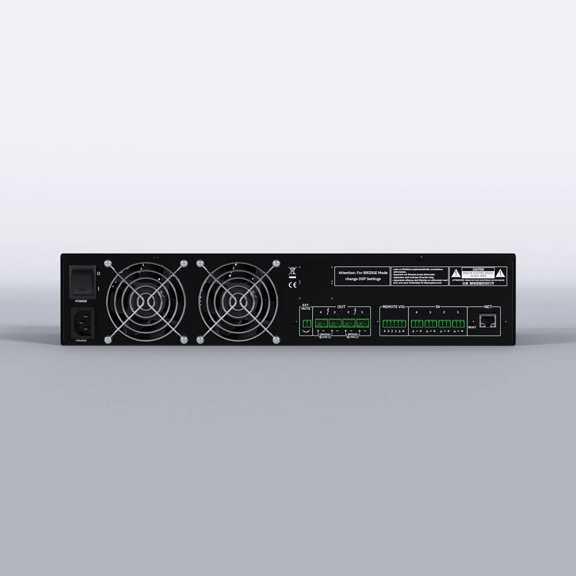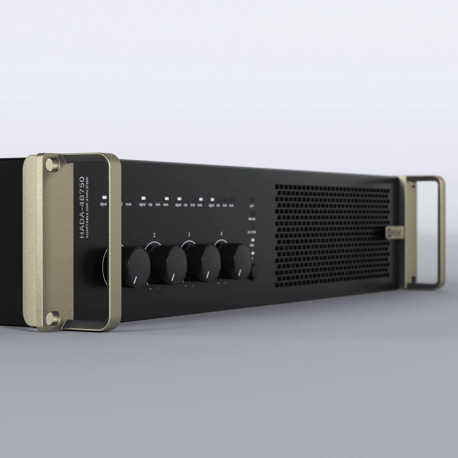 HADA-4B750 is a 4x750W digital amplifier that supports low and high impedance loads. The internal DSP, through the DSP Manager software, allows tailoring the input and output signal through parametric EQs, multi-band compressors, limiters, and delays and each configuration can be saved as a preset. In addition to the software option, input levels can be controlled via the front panel potentiometers, via remote controls using the rear panel GPI, or via a TCP/IP from third party control systems. All HADA series amplifiers include efficient thermal protection, DC protection, over current protection, and HF protection for total reliability in any kind of installation.