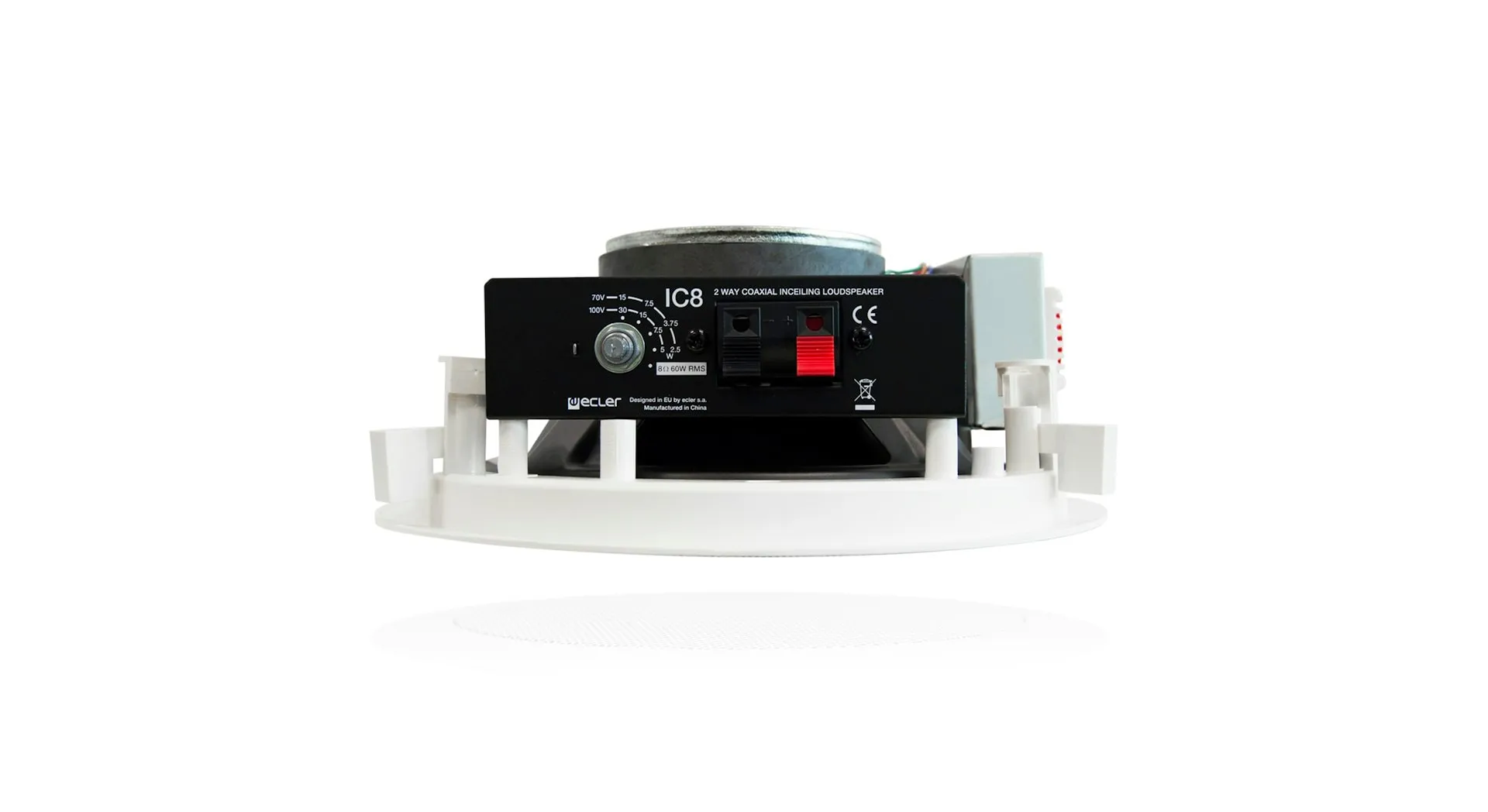 IC8 2-way loudspeaker is the perfect option for 70/100 V and low impedance sound solutions. It mounts an 8” woofer and a 1″ tweeter in a discreet design. IC series provide excellent sound quality thanks to their infinite baffle philosophy and a top-performance high frequency transducer.