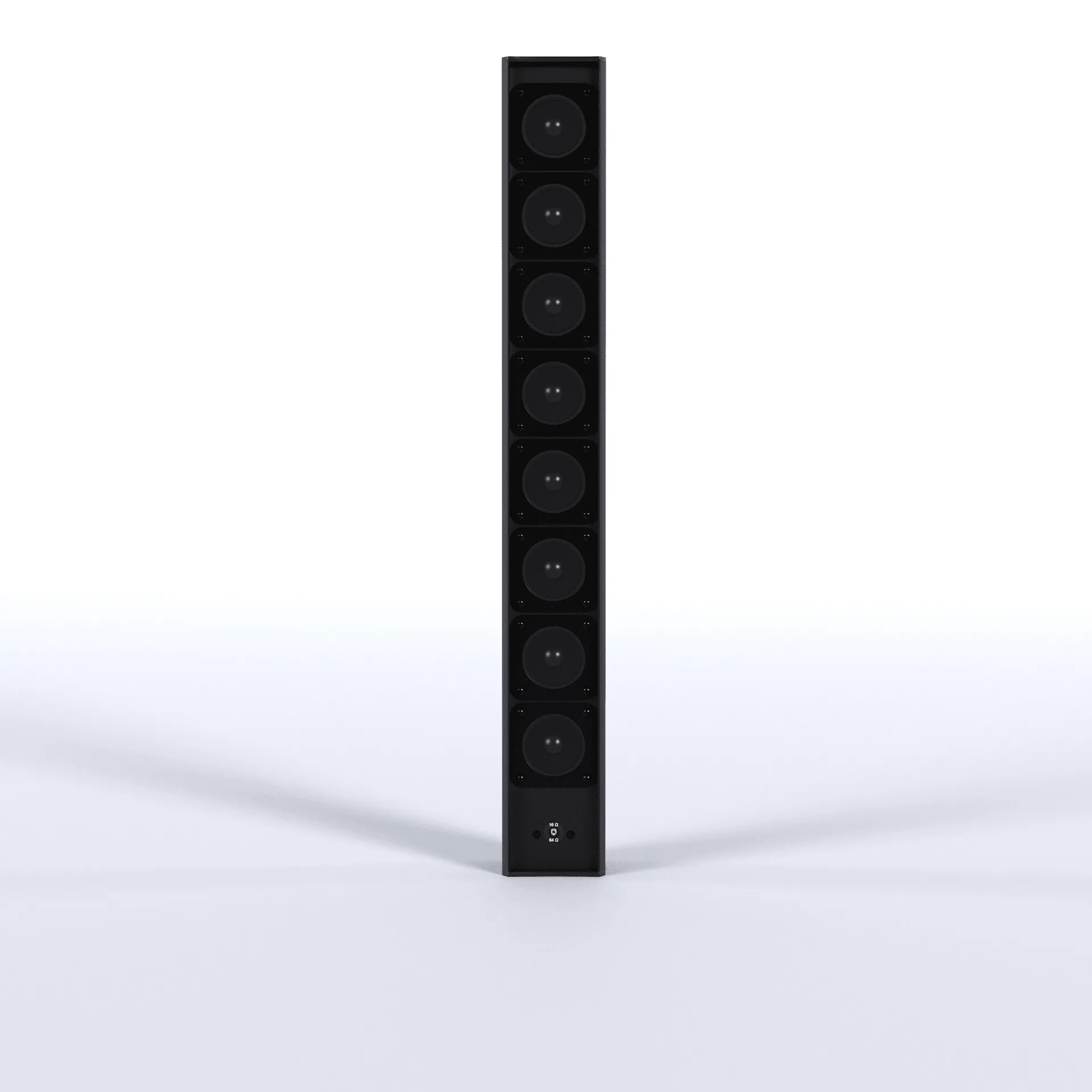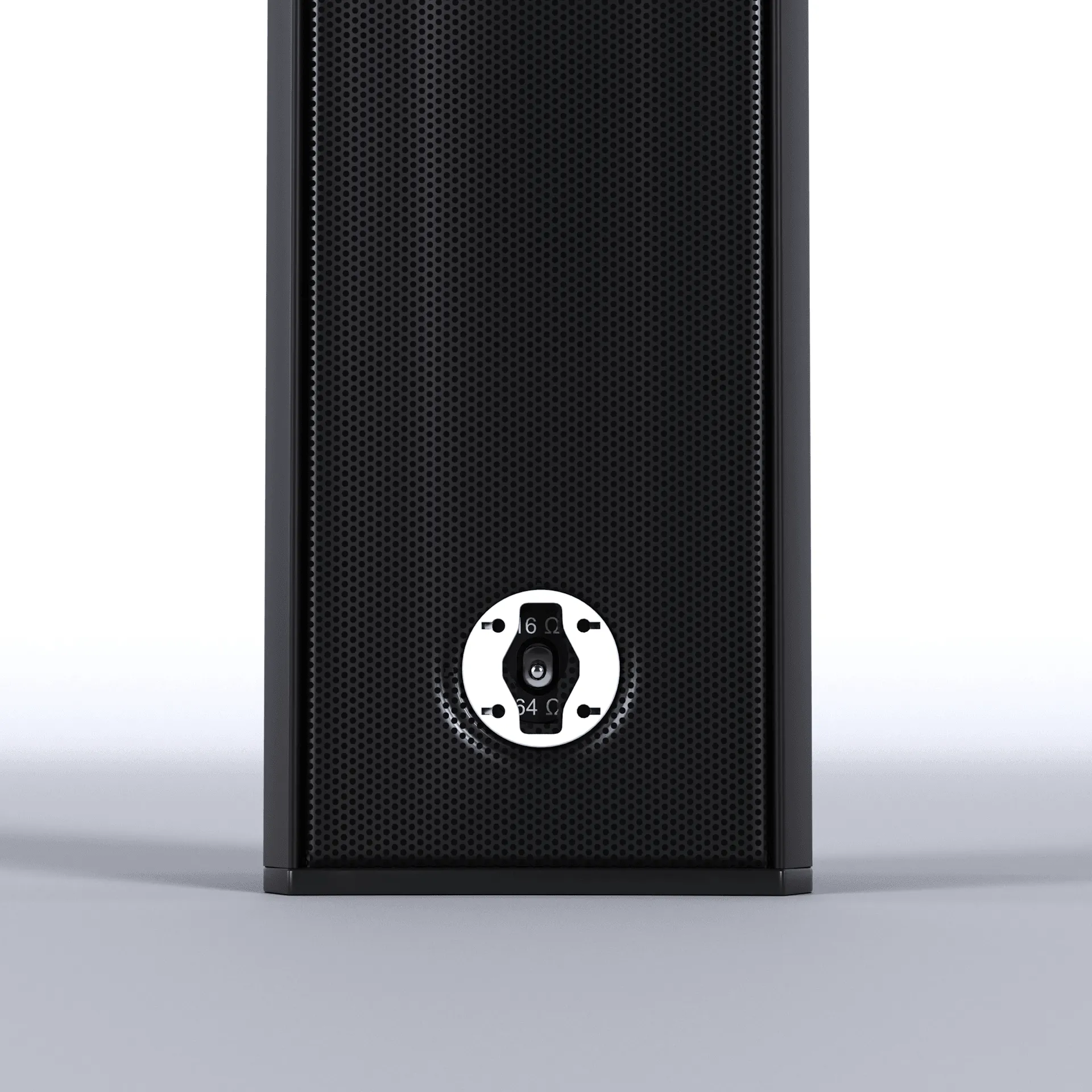 MIA-82 is a an elegant, unique a compact design column loudspeaker, built in a single aluminium piece to avoid vibrations and mechanical stress. MIA-82 includes 8×2.5” drivers with an RMS rating of 150W and behave as a mini line array with the disposition of 8 drivers per column and the possibility of working in 16Ω or 64Ω by selecting them behind the logo without the need to remove the grille. MIA-82 is available in black and white colour, is IP44 graded ready for outdoor applications. As a highlight, it includes the HANDY wall-mount incredibly versatile smart pan and tilt bracket made out of stainless-steel permits adjusting the height at any point of the length of the column.