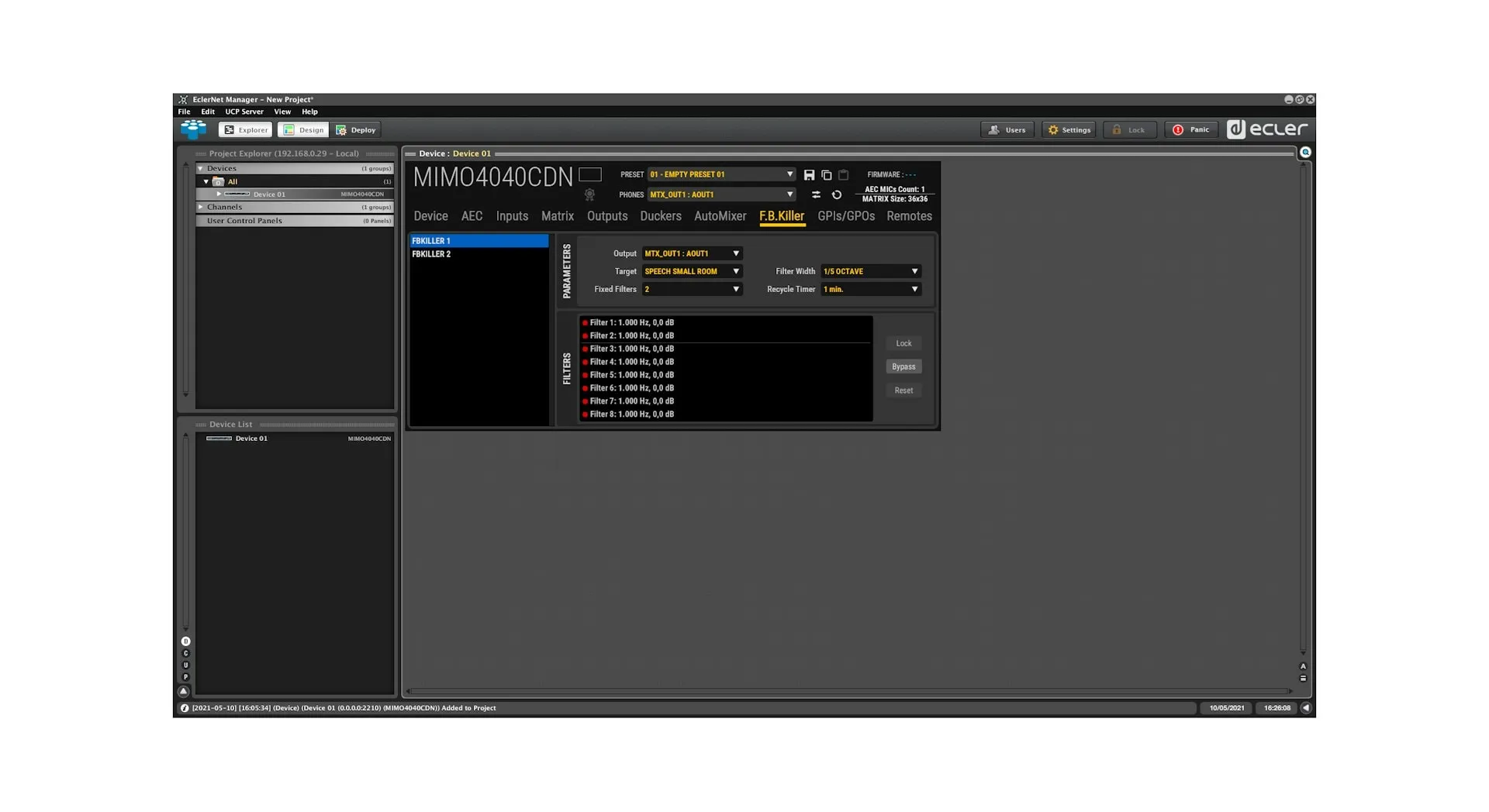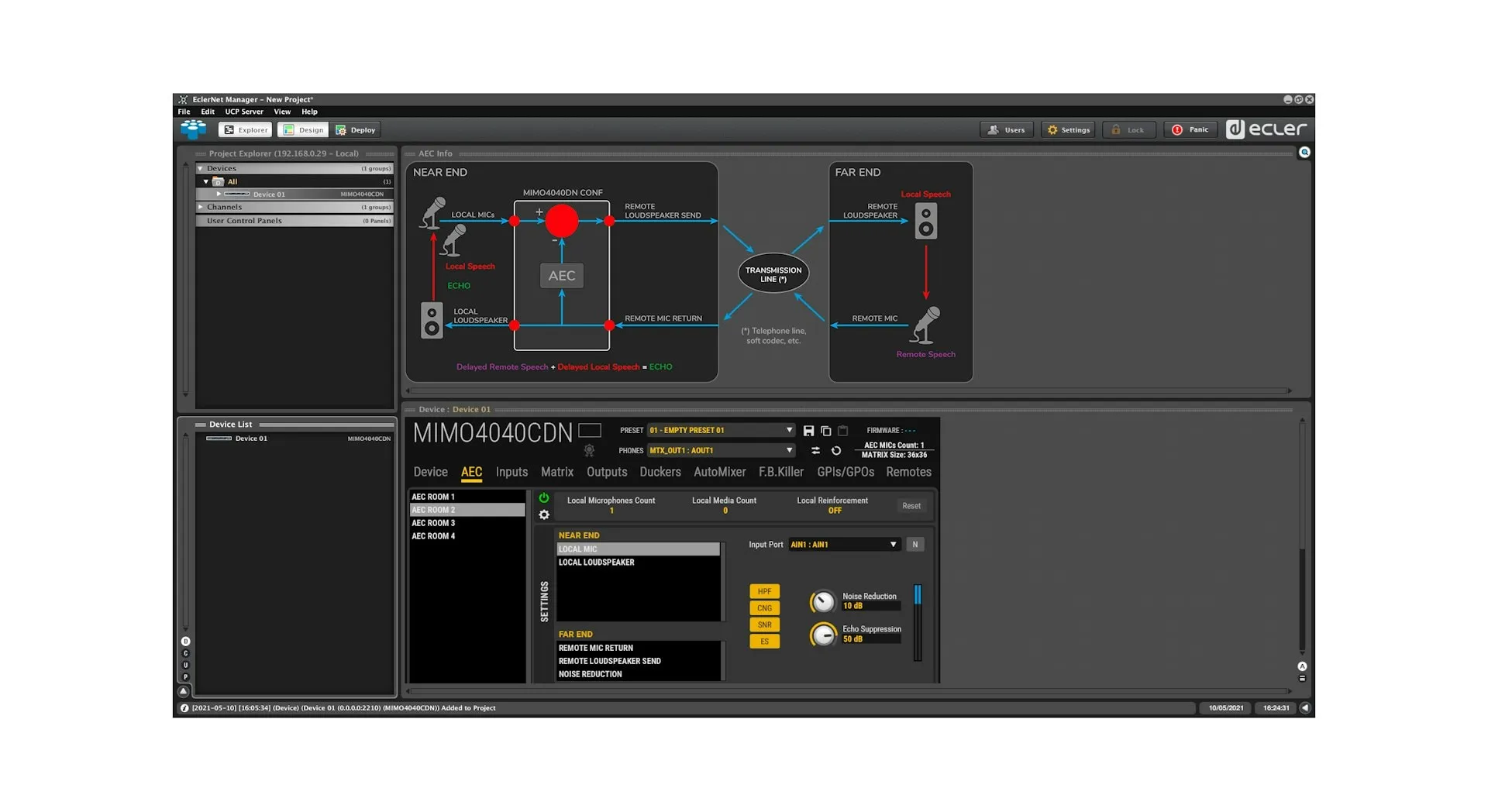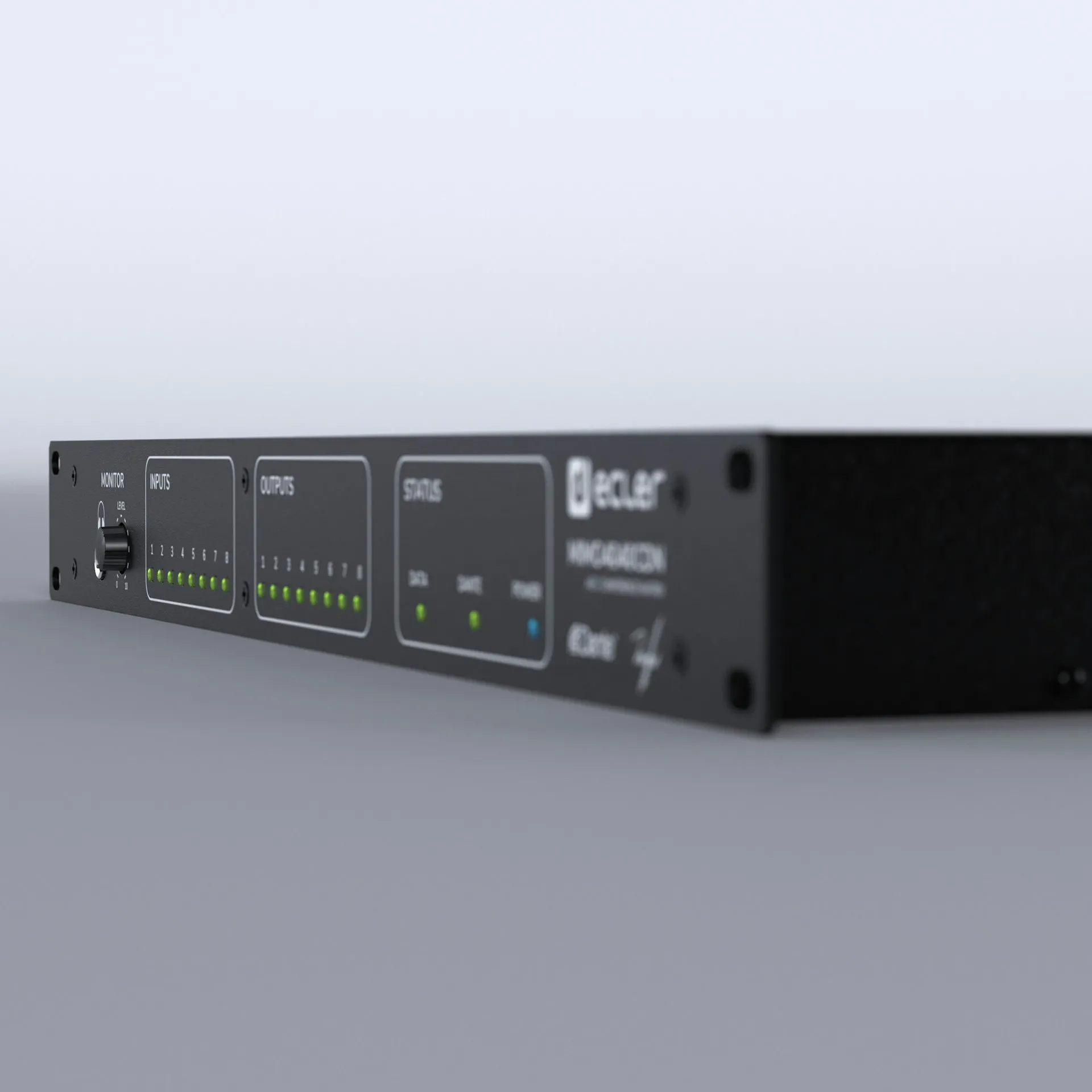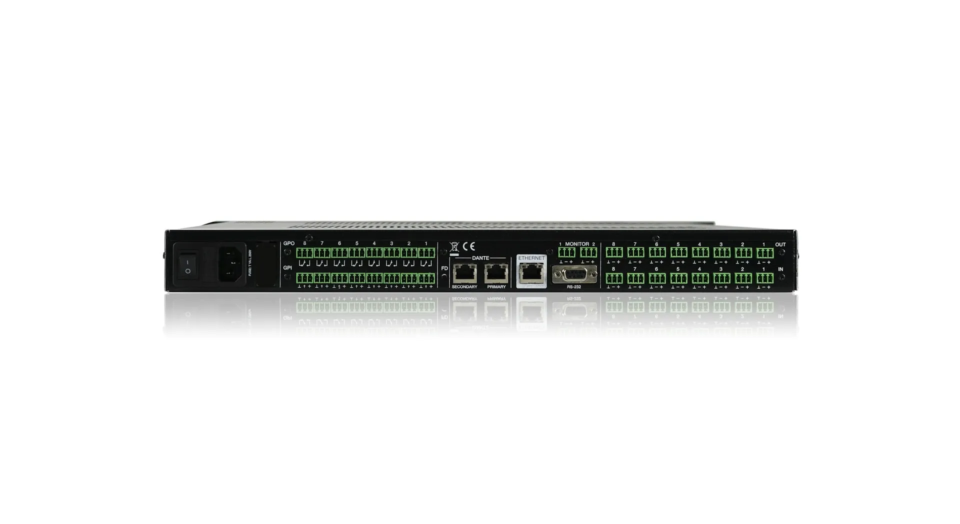 MIMO4040CDN is is a digital audio matrix including a native (full DSP) matrix of 40×40 input and output audio channels total size, specially designed for conference rooms. It includes functions such as AUTOMIXER or FEEDBACK KILLER by default, as well as up to 8 microphone channels with AEC (Acoustic Echo Canceling) processing activated by software licenses.