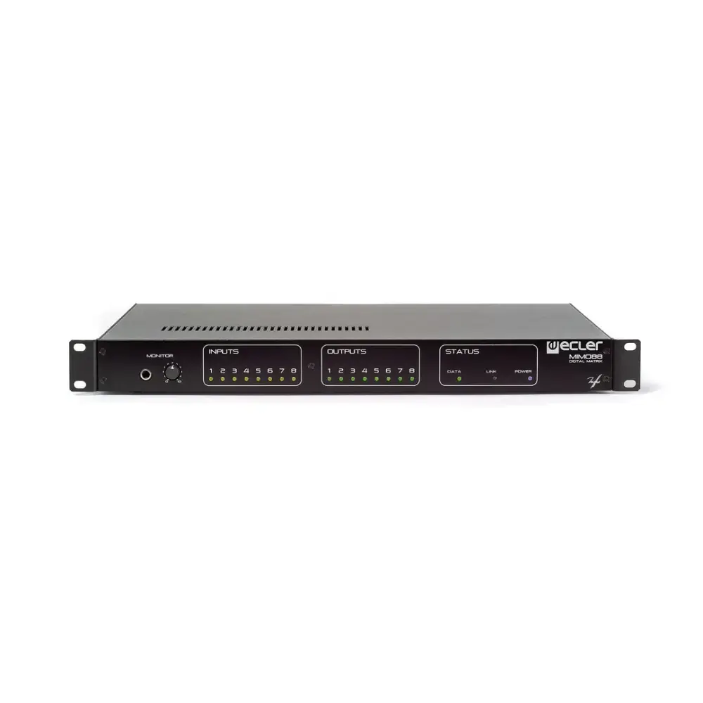 MIMO88 is an 8 in / 8 out digital audio matrix, fully programmable and linkable to a second unit to become a 16×16 matrix, with real routing from any input to any output.