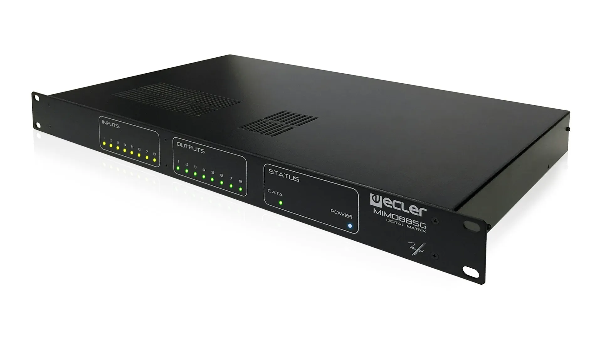 MIMO88SG (MIMO88 SINGLE) is an EclerNet digital audio device that keeps the heart and soul of the standard MIMO88, its main features and its audio quality, to become a simplified and cost-effective version of this acclaimed digital matrix.