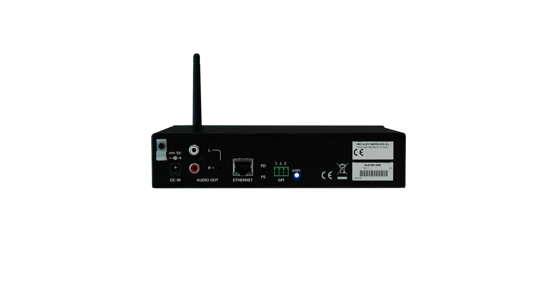 PLAYER ONE is a compact audio player with a stereo output that can play music contents from local storage media (USB/MicroSD card), Internet streams or digital sharing streams (DLNA and Airplay compatible).