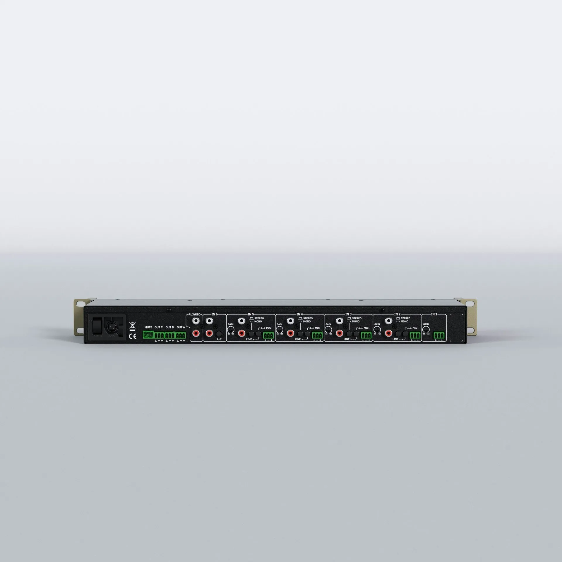 SAMI-603 is an installation audio mixer in standard rack format, featuring 1 MIC input + 4 MIC/LINE Stereo inputs + 1 LINE Stereo input and 3 outputs that can be configured as 1 stereo couple + 1 mono or 3 independent mono. Each output can get a dedicated mix from the available inputs and has a 3-band tone control. Talkover (priority) function is assignable to each input from IN1 to IN5 over the mix output buses. ST/MONO mix switch for the A/B outputs and MUTE port for external dry contact triggering.