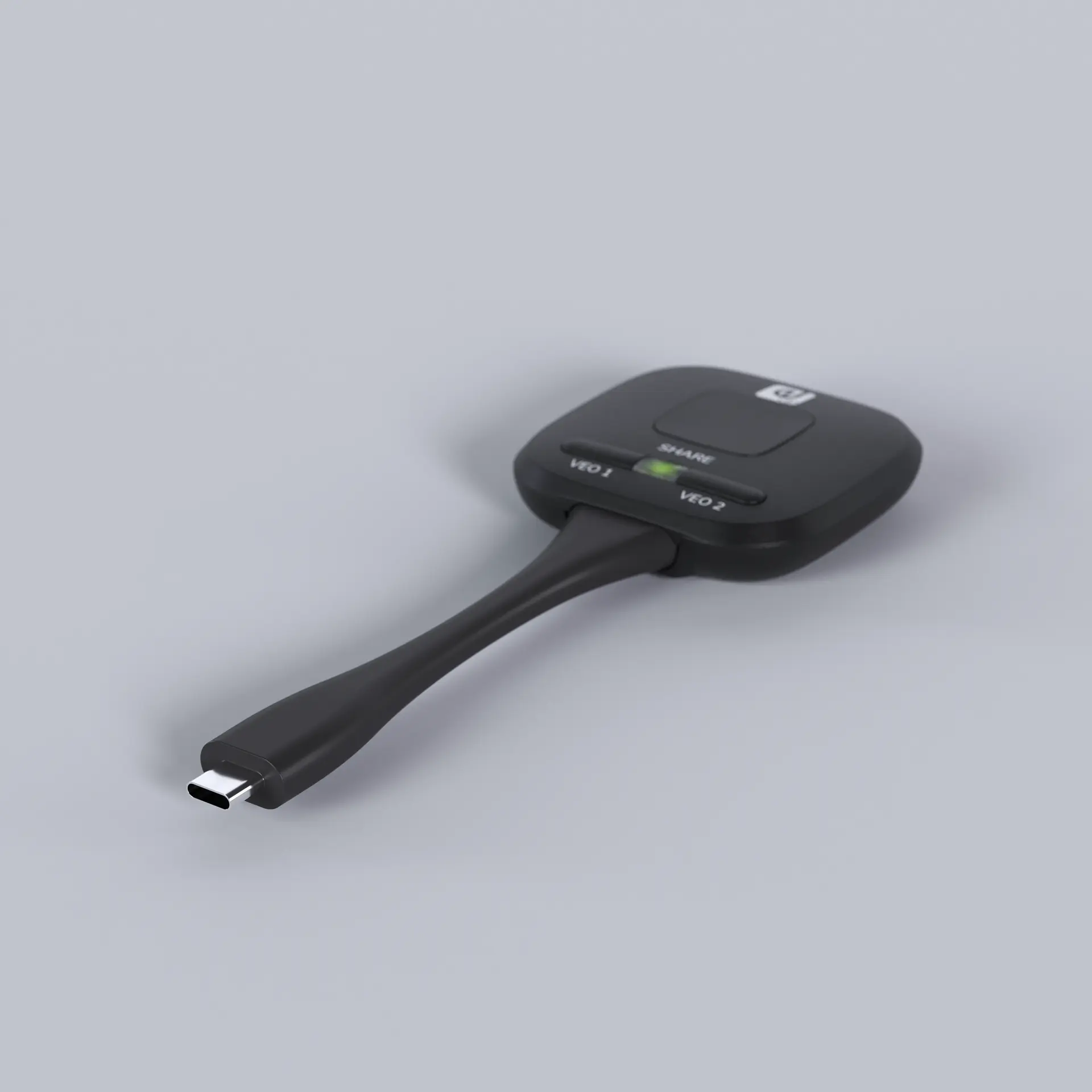 VEO-SWC45TU is a professional 4K USB-C wireless transmitter for screen mirroring in 4K resolution from a laptop or media player to the VEO-SWC45 switcher. Once the device is paired with a VEO-SWC45 unit, the 3 available buttons will allow the user to start and stop a given transmission. Two of the buttons are customizable.
