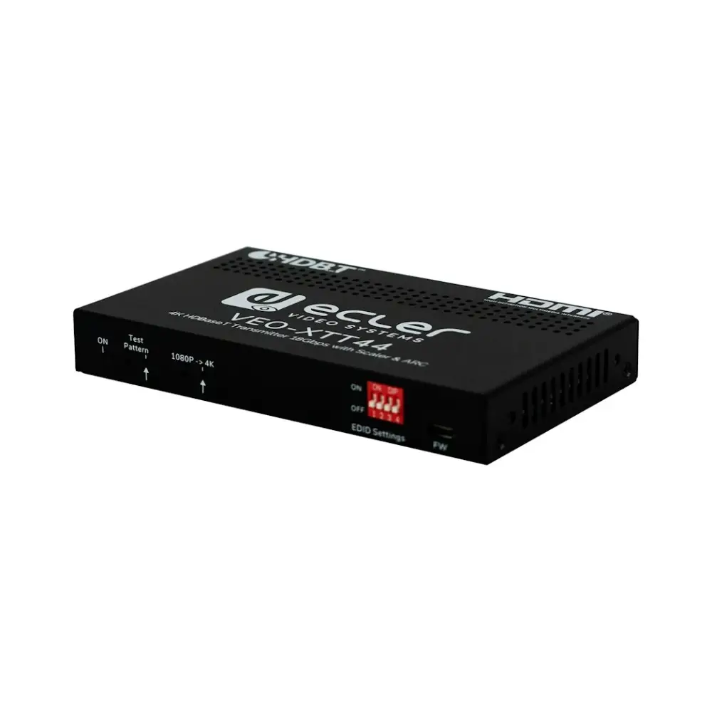 VEO-XTT44 is a professional HDBaseT transmitter for HDMI® extension of High Dynamic Range (HDR) formats. Bidirectional PoH (Power Over HDBaseT) allows to use only one power supply connected to the Transmitter or the Receiver, according to the installation needs. This product represents the ideal solution for residential and commercial applications that include the latest 4K/UHD and HDR sources and displays.