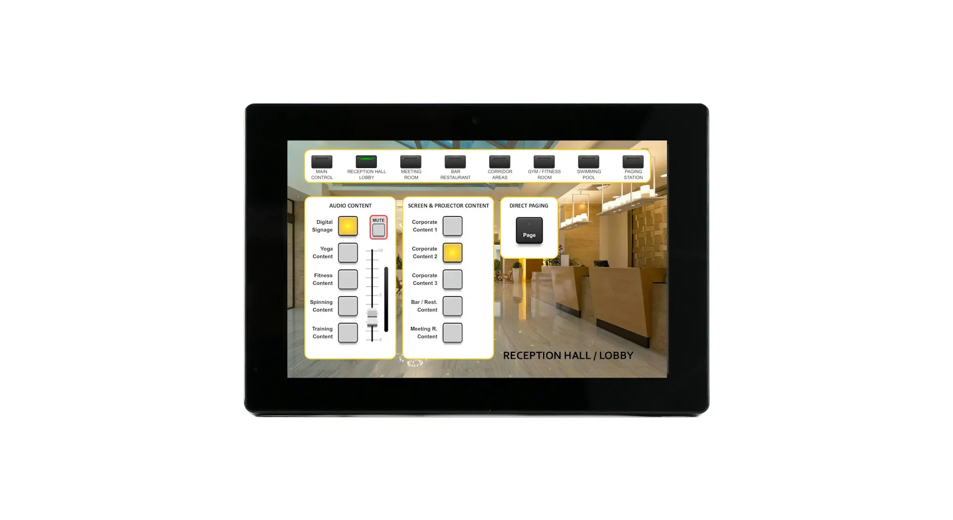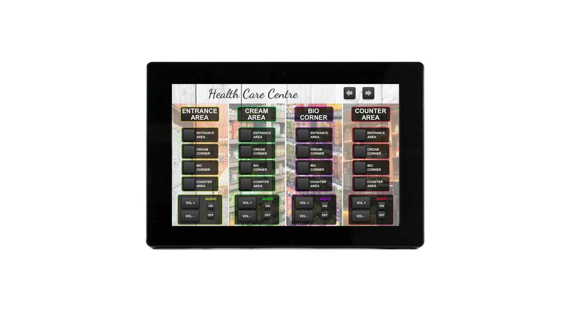 WPNETTOUCH is a remote control TFT touchscreen compatible with all EclerNet products. Incorporates a capacitive 10” touch screen, a server client and UCP server (User Control Panel). Each unit could be configured to work as a single zone control panel or as a global multi-zone controller. It allows executing User Control Panels that are able to control volume, sound source selection, presets recovery, communication via TCP/UDP with external devices, etc.